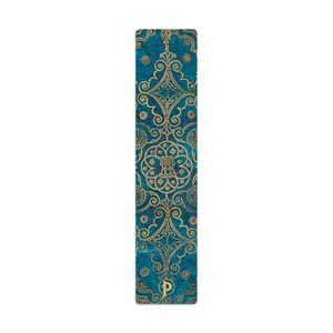 The 1688 edition of L’office de la Semaine Sainte, a Latin liturgical book, was protected by a gold-plated leather binding. Reproduced on our Azure bookmark with a vibrant blue background, the antique design features an elaborate gilt-edged tendril motif