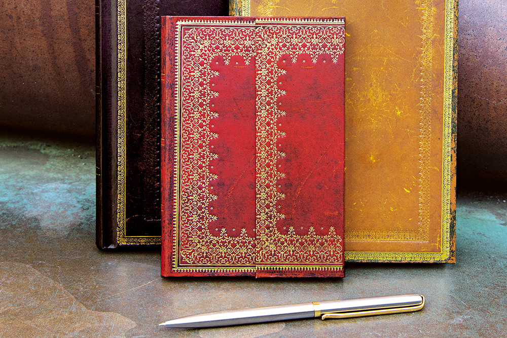 עור מרוקאי ידוע כחומר גמיש וחזק בו עשו שימוש בכריכות ספרים יוקרתיות מאז סוף המאה ה -16, אותם נהגו לעטר בזהב. זה היה מקור ההשראה לכריכת דמוי עור זו.