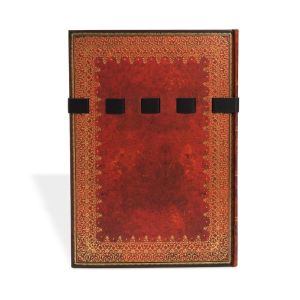 כריכות עור של הרנסנס נצבעו לרוב בגוונים אדומים עשירים כדי להדגיש את הקישוטים והטבעות זהב שעיטרו אותם. יצרנו את עטיפת היומן המעוטרת שלנו ברוח זו, והבאנו לביטוי את העיצוב התוסס והקליל האופייני לספרים עתיקים אלה