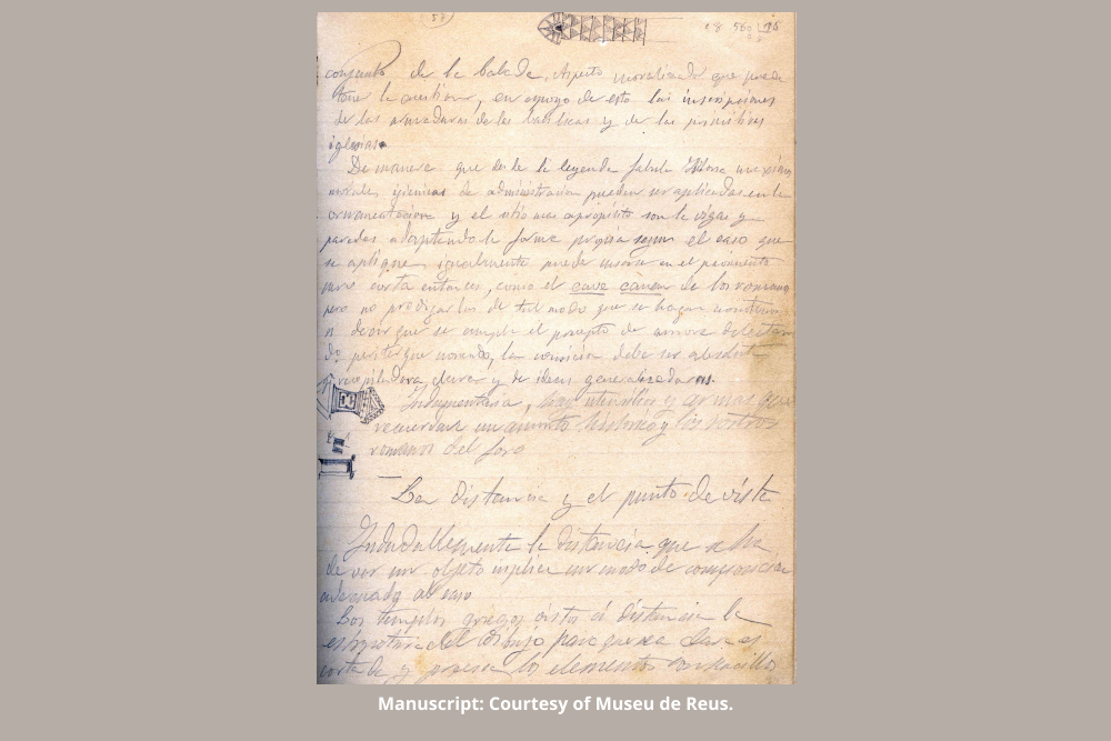 אנטוני גאודי היה אדריכל ספרדי שהיה ידוע כדמות מובילה במודרניזם. סגנונו מאופיין בתיאור צורות אורגניות ופסיפסים יוצאי דופן. ממוחזר כאן ה-Manuscrito de Reus, כתב ידו של האומן המוצג במוזיאון Reus, לצד פסיפסים מפסל הסלמנדרה האייקוני שלו ותמונה של בזיליקת סגרדה פמיליה.